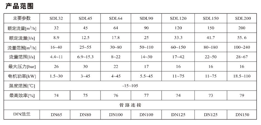 SDL45/SDLT45是一種多功能產(chǎn)品,可以輸送從自來水到工業(yè)液體的各種不同介質(zhì),適用于不同溫度、流量和壓力范圍。
